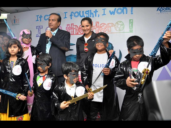 అపోలో ఆస్పత్రిలో బాలల దినోత్సవ వేడుకలను బుధవారం ఘనంగా నిర్వహించారు. ఈ కార్యక్రమానికి టెన్సిస్ స్టార్ సానియా మీర్జా హాజయ్యారు. క్రిష్ మాస్కులను ధరించిన క్యాన్సర్ బాధిత చిన్నారుల ఆటపాటలను ఆమె ఆస్వాదించారు.