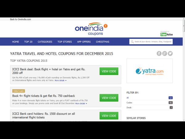 బెంగుళూరు: ఎప్పుడెప్పుడా అని ఎదురు చూస్తున్న ఈ వారం వన్ఇండియా కూపన్లు మీ ముందుకొచ్చాయి. క్రిస్మస్ పండుగని పురస్కరించుకుని ఆన్లైన్ షాపింగ్ ప్రియుల కోసం అత్యధిక డిస్కౌంట్ కలిగిన కూపన్లను మీ ముందుకు తెస్తున్నాం.