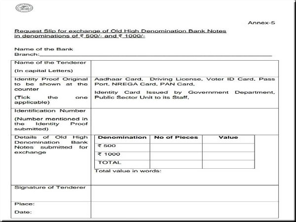 * ఒక నిర్దిష్ట ఫారంను పూరించి నోట్లు మార్చుకోవాలి.