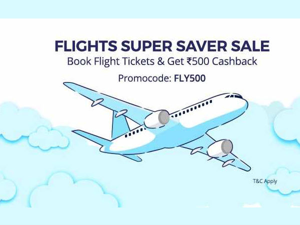ఫ్లైట్ సూపర్ సేవ్ సేల్ ! ఫ్లైట్ టికెట్ల బుకింగ్పై రూ. 500 క్యాష్ బ్యాక్ (కోడ్: FLY500)