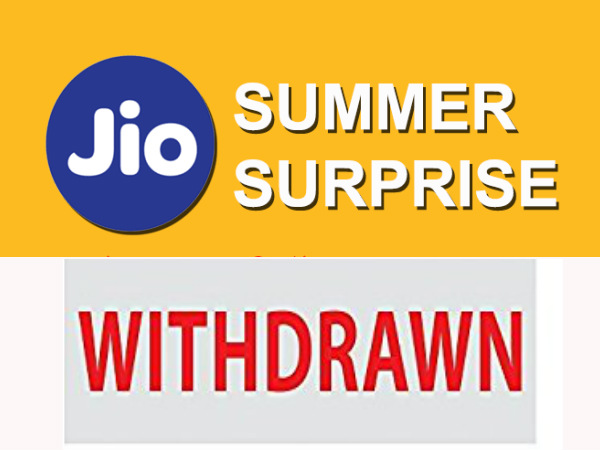 రిలయన్స్ జియో సమ్మర్ సర్ప్రైజ్ ఆఫర్లను నిలిపివేస్తున్నట్లు ప్రకటించింది. కొద్ది రోజుల్లో ఈ ఆఫర్ను నిలిపివేయనున్నట్లు ప్రకటించింది. దేశ టెలికాం రంగంలో టారిఫ్లు, ఉచిత ఆఫర్ల విషయంలో ప్రకంపనలు సృష్టించిన జియో ఆదిలోనే టెలికాం దిగ్గజాలకు గుబులు పుట్టించింది. ఈ నేపథ్యంలో జియో సమ్మర్ సర్ప్రైజ్ ఆఫర్ను ఎందుకు వెనక్కు తీసుకుంటుందో తెలుసుకోవాలకుంటే ఇది చదవండి.