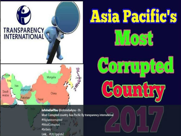 భారతదేశాన్ని అవినీతి లేని దేశంగా మారుస్తామని ప్రధానమంత్రి మోడీ చెబుతున్న మాటలకు, వాస్తవానికి పొంతన ఉండటం లేదు. ఆసియాలోనే అత్యంత అవినీతిమయ దేశంగా భారత్ నిలవడమే దీనికి కారణం. ట్రాన్స్పరెన్సీ ఇంటర్నేషనల్ చేపట్టిన సర్వేలో పలు ఆసక్తికర విషయాలు వెల్లడయ్యాయి.