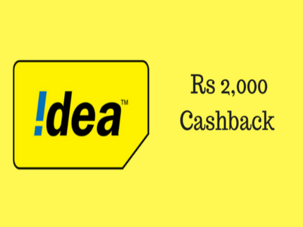 ఆదిత్య బిర్లా నేతృత్వంలోని ఐడియా సెల్యులర్ ఇప్పుడు క్యాష్బ్యాక్ ఐశ్వర్యంను తదుపరి స్థాయికి తీసుకుంది రూ . 2,000 ఏ బ్రాండ్తో సంబంధం లేకుండా అన్ని కొత్త 4G స్మార్ట్ ఫోన్ లలో క్యాష్ బ్యాక్ ఆఫర్.