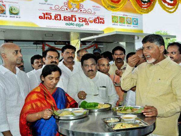 పొరుగు రాష్ట్రం తమిళనాడులోని అమ్మ క్యాంటీన్ల శ్రేణిలో, కేవలం రూ.పాయలకే అల్పాహారం, భోజనం మరియు విందును అందిస్తున్న అన్నా క్యాంటీన్లను CM నాయుడు ప్రారంభించారు.