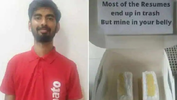 Viral News: కరోనా మహమ్మారి తర్వాత అనేక మందికి ఉద్యోగాలు కనుగొనడం కష్టంగా మారింది. అయితే.. జొమాటో టీషర్ష్ లో ఒక వ్యక్తి ఉద్యోగం కోసం కొత్త పరిష్కార మార్గంతో ముందుకు వచ్చాడు. ఉద్యోగం పొందటానికి అతడు తన రెజ్యూమ్ ను ఒక కేక్ బాక్సులో ఉంచి కంపెనీ యజమానులకు డెలివరీ ఇస్తూ వారి అటెంన్షన్ పొందేందుకు ప్రయత్నించాడు. అతను తన రెజ్యూమ్ని బెంగళూరులోని అనేక స్టార్టప్లకు ఇలా పంపుతున్న వీడియో ఇప్పుడు వైరల్ గా మారింది. చాలా రెజ్యూమ్ లు చెత్తలోకి వెళతాయి, కానీ నాది మీ కడుపులోకి వెళుతుందని అంటూ ఆ పెట్టెలో రాశాడు. ఇలా సదరు వ్యక్తి తనలోని మార్కెటింగ్ ట్యాలెంట్ ను బయటపెట్టాడు.