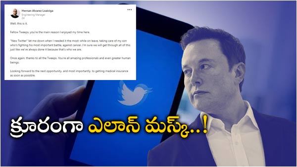 తొలగింపుల క్రమంలో హెర్నాన్ అల్వారెజ్ లూయిసికా అనే ఉద్యోగిని ట్విట్టర్ తొలగించింది. అయితే క్యాన్సర్తో బాధపడుతున్న కొడుకు కోసం సెలవులో ఉన్న సమయంలో అట్లాంటా ప్రాంతంలో పనిచేస్తున్న అతడిని ఎలాన్ మస్క్ తొలగించటం తీవ్ర దిగ్భ్రాంతికి గురి చేసింది. తనకు చాలా అవసరమైన సమయంలో కొత్త ట్విట్టర్ తనను నిరాశపరిచిందని అన్నారు. క్యాన్సర్తో పోరాడుతున్న కొడుకును కాపాడుకునే క్రమంలో సంక్షోభం రావటంపై చింతించాడు.