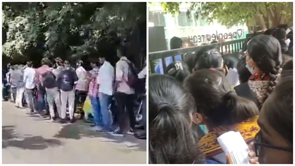 ఇటీవల కోల్ కతాలోనూ దాదాపు ఇదే విధంగా జరగ్గా.. ఇప్పుడు ఆ సీన్ భాగ్యనగరంలో రిపీట్ అయింది. విప్రో కార్యాలయం వెలుపల వాక్-ఇన్ ఇంటర్వ్యూ డ్రైవ్ కోసం వేలాది మంది వేచి చూస్తున్న వీడియోలు అప్పుడు బాగా సర్క్యులేట్ అయ్యాయి. ఇరు ప్రాంతాల్లో బయటకు వచ్చిన ఈ వీడియోలు ఉద్యోగార్థుల దీన స్థితిని కళ్లకు కట్టినట్లు చూపిస్తున్నాయి.